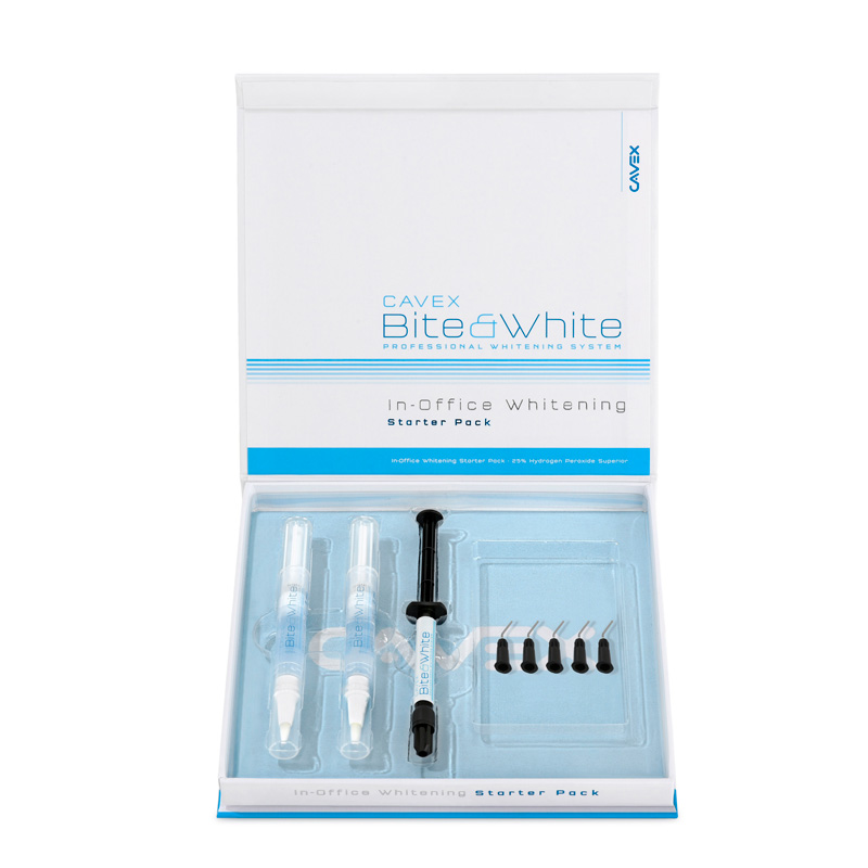 Para resultados de blanqueamiento óptimos con una sensibilidad mínima, Cavex ha desarrollado el sistema “Cavex Bite&White para clínicas dentales”.